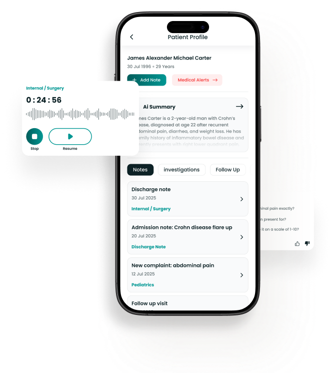 An AI-powered clinical assistant that automatically documents visits, organizes patient information, and adapts to your note-taking style.